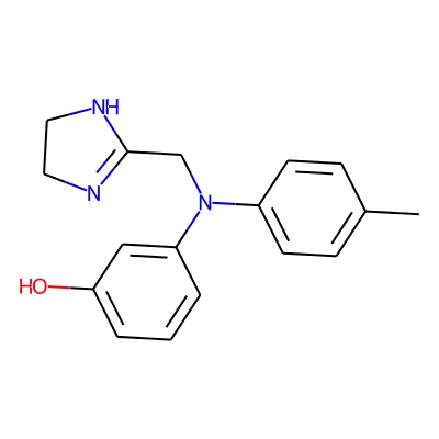 | CCSBASE_5D74812E86 | Phentolamine | [M+Na]+ | 304.1426 | 174.3 | CC1=CC=C(C=C1)N(CC2=NCCN2)C3=CC(=CC=C3)O | small molecule | 1 | 26 | DT | single field, calibrated | |