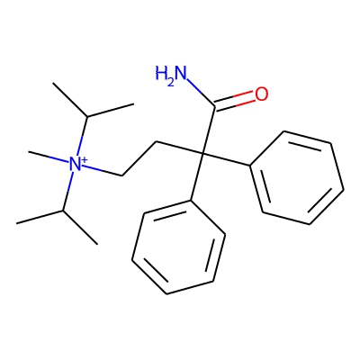 | CCSBASE_F374080FD9 | Isopropamide | [M]+ | 353.2593 | 185.7 | CC(C)[N+](C)(CCC(C1=CC=CC=C1)(C2=CC=CC=C2)C(=O)N)C(C)C | small molecule | 1 | 26 | DT | single field, calibrated | |