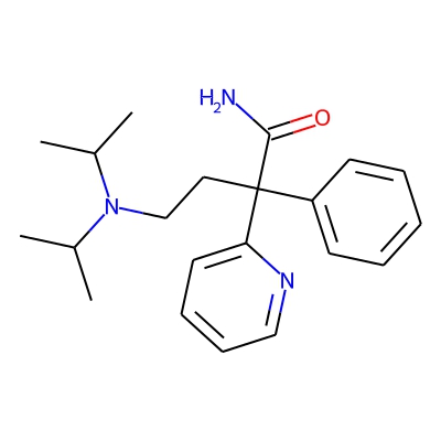| CCSBASE_13BC8929F1 | Disopyramide | [M+Na]+ | 362.2209 | 182.4 | CC(C)N(CCC(C1=CC=CC=C1)(C2=CC=CC=N2)C(=O)N)C(C)C | small molecule | 1 | 26 | DT | single field, calibrated | |