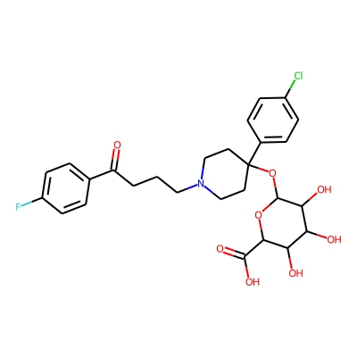 | CCSBASE_8B7C5B867F | Haloperidol_met015 | [M+H]+ | 552.18 | 232.8 | O=C(CCCN1CCC(OC2OC(C(=O)O)C(O)C(O)C2O)(c2ccc(Cl)cc2)CC1)c1ccc(F)cc1 | small molecule | 1 | 26 | DT | single field, calibrated | |