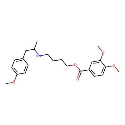 | CCSBASE_177524C2DA | Mebeverine_met008 | [M+H]+ | 402.228 | 200.8 | COc1ccc(CC(C)NCCCCOC(=O)c2ccc(OC)c(OC)c2)cc1 | small molecule | 1 | 26 | DT | single field, calibrated | |