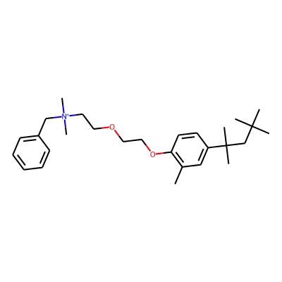 | CCSBASE_D1CBEF255F | Methylbenzethonium | [M]+ | 426.3372 | 213.1 | CC1=C(C=CC(=C1)C(C)(C)CC(C)(C)C)OCCOCC[N+](C)(C)CC2=CC=CC=C2 | small molecule | 1 | 26 | DT | single field, calibrated | |