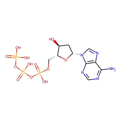 | CCSBASE_D261C02A89 | 2'-Deoxyadenosine 5'-triphosphate | [M-H]- | 489.993 | 183.7786738 | C1[C@@H]([C@H](O[C@H]1N2C=NC3=C2N=CN=C3N)COP(=O)(O)OP(=O)(O)OP(=O)(O)O)O | small molecule | 1 | 4 | DT | single field, calibrated with Agilent tune mix (Agilent) | |