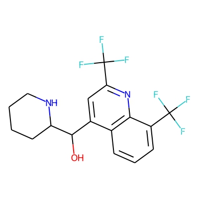 | CCSBASE_9C7AD36F49 | Mefloquine | [M+H]+ | 379.1245 | 180.2 | C1CCNC(C1)C(C2=CC(=NC3=C2C=CC=C3C(F)(F)F)C(F)(F)F)O | small molecule | 1 | 26 | DT | single field, calibrated | |