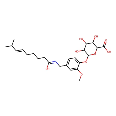 | CCSBASE_31E3BD402F | Capsaicin_met017 | [M+K]+ | 520.1949 | 217.0 | COc1cc(CN=C(O)CCCC/C=C/C(C)C)ccc1OC1OC(C(=O)O)C(O)C(O)C1O | small molecule | 1 | 26 | DT | single field, calibrated | |