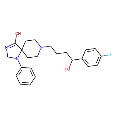 | CCSBASE_999580B07B | Spiperone_met004 | [M+H]+ | 398.2244 | 193.0 | OC1=NCN(c2ccccc2)C12CCN(CCCC(O)c1ccc(F)cc1)CC2 | small molecule | 1 | 26 | DT | single field, calibrated |