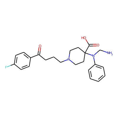 | CCSBASE_C904EF5B6B | Spiperone_met009 | [M+H]+ | 414.2193 | 199.8 | NCN(c1ccccc1)C1(C(=O)O)CCN(CCCC(=O)c2ccc(F)cc2)CC1 | small molecule | 1 | 26 | DT | single field, calibrated | |