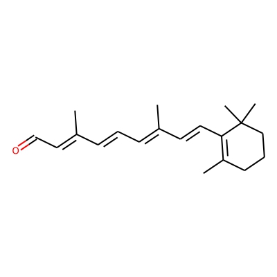 | CCSBASE_16DD5C4427 | Retinol_met011 | [M+H]+ | 285.2218 | 172.4 | CC1=C(/C=C/C(C)=C/C=C/C(C)=C/C=O)C(C)(C)CCC1 | small molecule | 1 | 26 | DT | single field, calibrated | |