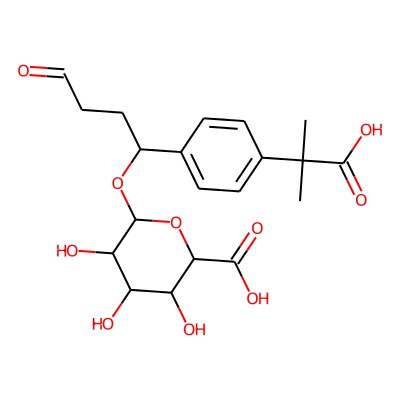 | CCSBASE_6616D122EC | Fexofenadine_met015 | [M+Na]+ | 449.1424 | 199.4 | CC(C)(C(=O)O)c1ccc(C(CCC=O)OC2OC(C(=O)O)C(O)C(O)C2O)cc1 | small molecule | 1 | 26 | DT | single field, calibrated | |
