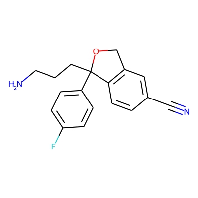 | CCSBASE_5A927A7730 | Didemethylcitalopram | [M+Na]+ | 320.1063 | 165.3 | C1C2=C(C=CC(=C2)C#N)C(O1)(CCCN)C3=CC=C(C=C3)F | small molecule | 1 | 26 | DT | single field, calibrated | |