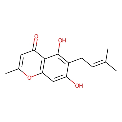 | CCSBASE_969E03190A | Peucenin | [M+H]+ | 261.1127 | 153.8 | CC1=CC(=O)C2=C(O1)C=C(C(=C2O)CC=C(C)C)O | small molecule | 1 | 26 | DT | single field, calibrated | |