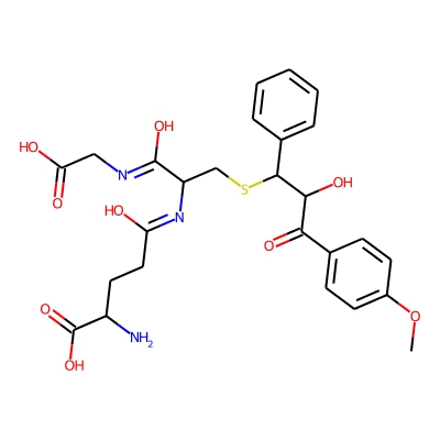 | CCSBASE_97AF46B229 | 4'-methoxychalcone_met008 | [M+H]+ | 562.1859 | 233.7 | COc1ccc(C(=O)C(O)C(SCC(N=C(O)CCC(N)C(=O)O)C(O)=NCC(=O)O)c2ccccc2)cc1 | small molecule | 1 | 26 | DT | single field, calibrated | |