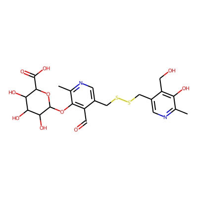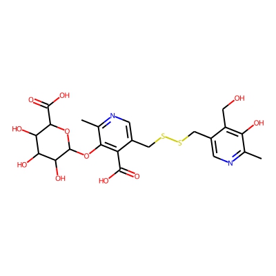 | CCSBASE_D1B8E38A87 | Pyritinol_met004 | [M+K]+ | 581.0666 | 205.7 | Cc1ncc(CSSCc2cnc(C)c(OC3OC(C(=O)O)C(O)C(O)C3O)c2C=O)c(CO)c1O | small molecule | 1 | 26 | DT | single field, calibrated | |