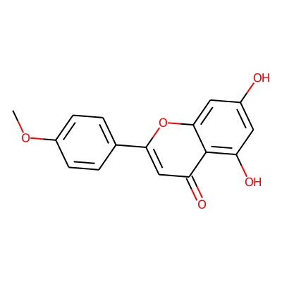 | CCSBASE_A2BF46F90E | Acacetin | [M+H]+ | 285.0763 | 158.7 | COC1=CC=C(C=C1)C2=CC(=O)C3=C(C=C(C=C3O2)O)O | small molecule | 1 | 26 | DT | single field, calibrated | |