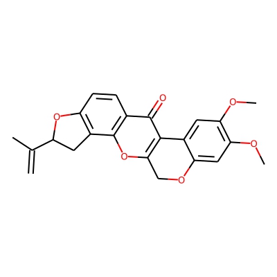 | CCSBASE_9D7E608A7E | Dehydrorotenone | [M+Na]+ | 415.1158 | 204.4 | CC(=C)C1CC2=C(O1)C=CC3=C2OC4=C(C3=O)C5=CC(=C(C=C5OC4)OC)OC | small molecule | 1 | 26 | DT | single field, calibrated | |