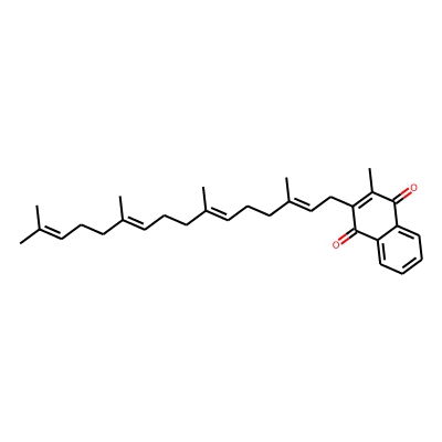 | CCSBASE_CDDEDFD3AD | Menaquinone-4 | [M+Na]+ | 467.2926 | 202.3 | CC1=C(C(=O)C2=CC=CC=C2C1=O)C/C=C(\C)/CC/C=C(\C)/CC/C=C(\C)/CCC=C(C)C | small molecule | 1 | 26 | DT | single field, calibrated | |