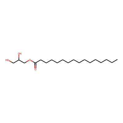 | CCSBASE_EC7DA2DC35 | 1-monopalmitin | [M+K]+ | 369.2407 | 180.5 | CCCCCCCCCCCCCCCC(=O)OCC(CO)O | small molecule | 1 | 26 | DT | single field, calibrated | |