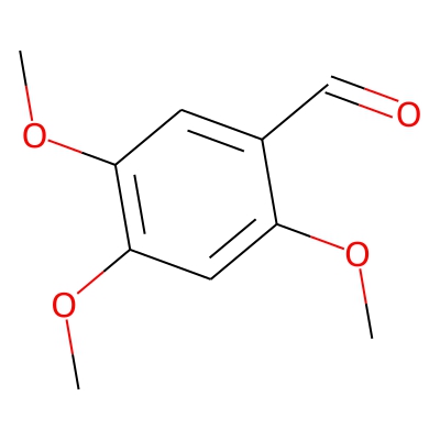 | CCSBASE_84E6C20FAC | Asarylaldehyde | [M+H]+ | 197.0814 | 137.1 | COC1=CC(=C(C=C1C=O)OC)OC | small molecule | 1 | 26 | DT | single field, calibrated | |
