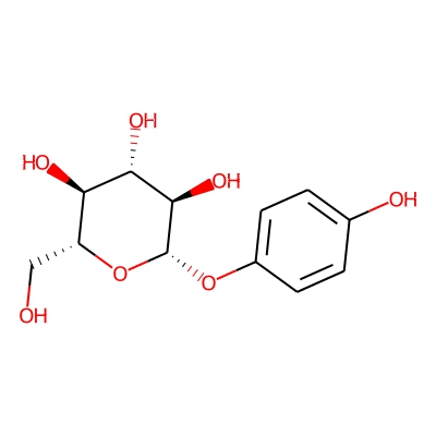 | CCSBASE_B3E7B4E835 | Arbutin | [M+Na]+ | 295.0794 | 163.0 | C1=CC(=CC=C1O)O[C@H]2[C@@H]([C@H]([C@@H]([C@H](O2)CO)O)O)O | small molecule | 1 | 26 | DT | single field, calibrated | |