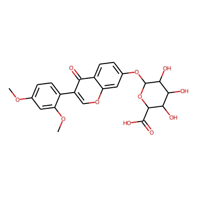 | CCSBASE_4491DEB07B | 2'-methoxyformonetin_met014 | [M+Na]+ | 497.106 | 224.1 | COc1ccc(-c2coc3cc(OC4OC(C(=O)O)C(O)C(O)C4O)ccc3c2=O)c(OC)c1 | small molecule | 1 | 26 | DT | single field, calibrated | |