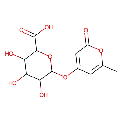 | CCSBASE_E2124F874B | 4-hydroxy-6-methylpyran-2-one_met007 | [M+Na]+ | 325.0536 | 161.7 | Cc1cc(OC2OC(C(=O)O)C(O)C(O)C2O)cc(=O)o1 | small molecule | 1 | 26 | DT | single field, calibrated | |