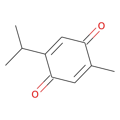 | CCSBASE_A3043759B5 | Thymoquinone | [M+H-H2O]+ | 147.0809 | 126.2 | CC1=CC(=O)C(=CC1=O)C(C)C | small molecule | 1 | 26 | DT | single field, calibrated |
