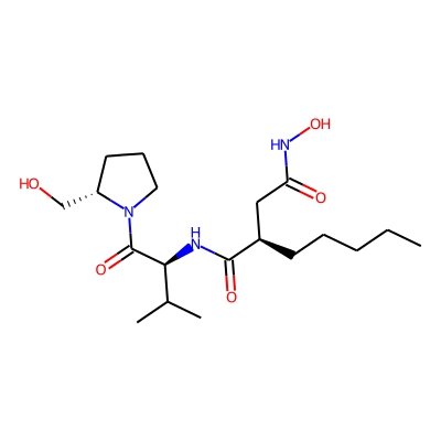 | CCSBASE_7E5E658E1A | Actinonin | [M+H-H2O]+ | 368.2549 | 186.9 | CCCCC[C@H](CC(=O)NO)C(=O)N[C@@H](C(C)C)C(=O)N1CCC[C@H]1CO | small molecule | 1 | 26 | DT | single field, calibrated | |
