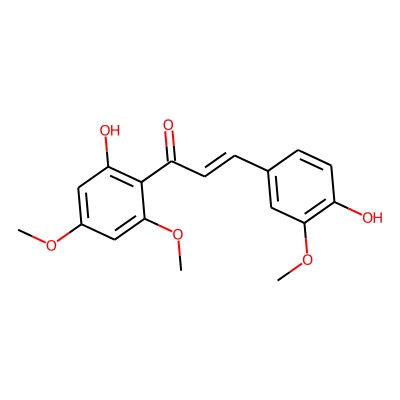 | CCSBASE_8C093185BC | 2',4-dihydroxy-3,4',6'-trimethoxychalcone | [M+H]+ | 331.1181 | 176.5 | COC1=CC(=C(C(=C1)OC)C(=O)/C=C/C2=CC(=C(C=C2)O)OC)O | small molecule | 1 | 26 | DT | single field, calibrated | |