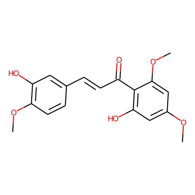 | CCSBASE_1A2E196D62 | 2',3-dihydroxy-4,4',6'-trimethoxychalcone | [M+K]+ | 369.074 | 168.9 | COC1=C(C=C(C=C1)/C=C/C(=O)C2=C(C=C(C=C2OC)OC)O)O | small molecule | 1 | 26 | DT | single field, calibrated | |