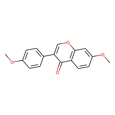 | CCSBASE_ED9BCC2F8F | 7,4'-dimethoxyisoflavone | [M+Na]+ | 305.079 | 170.3 | COC1=CC=C(C=C1)C2=COC3=C(C2=O)C=CC(=C3)OC | small molecule | 1 | 26 | DT | single field, calibrated | |