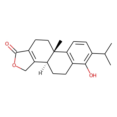 | CCSBASE_D1FF4C82FA | Triptophenolide | [M+H-H2O]+ | 295.1697 | 161.5 | CC(C)C1=C(C2=C(C=C1)[C@]3(CCC4=C([C@@H]3CC2)COC4=O)C)O | small molecule | 1 | 26 | DT | single field, calibrated | |