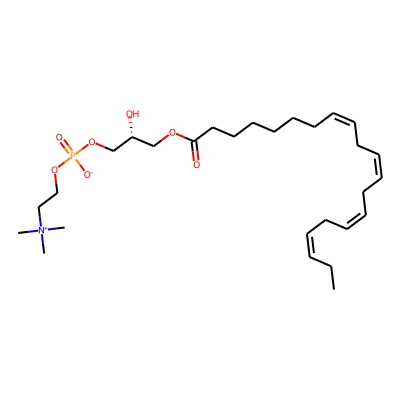 | CCSBASE_E8B3034F20 | LPC(20:4) | [M+H]+ | 544.34 | 232.4 | C(OP(OCC[N+](C)(C)C)(=O)[O-])[C@]([H])(O)COC(=O)CCCCCC/C=C\C/C=C\C/C=C\C/C=C\CC | lipid | 1 | 5 | TW | calibrated with phosphatidylcholines (ESI+) and phosphatidylethanolamines (ESI-) | |