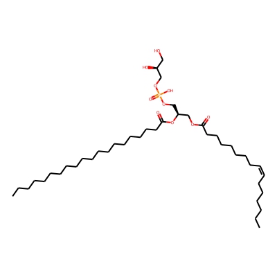| CCSBASE_EA7C1FB446 | PG(40:6) | [M-H]- | 821.531 | 281.9 | [H][C@](O)(CO)COP(OC[C@]([H])(OC(CCCC/C=C\C/C=C\C/C=C\C/C=C\CC)=O)COC(CCCCCCCCCCC/C=C\C/C=C\CCCCC)=O)(=O)O | lipid | 1 | 5 | TW | calibrated with phosphatidylcholines (ESI+) and phosphatidylethanolamines (ESI-) | |