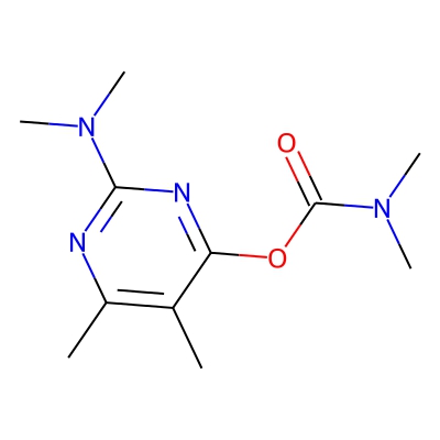 | CCSBASE_180F5268E6 | Pirimicarb | [M+H]+ | 239.1503 | 154.68 | CC1=C(N=C(N=C1OC(=O)N(C)C)N(C)C)C | small molecule | 1 | 6 | TW | ? | |