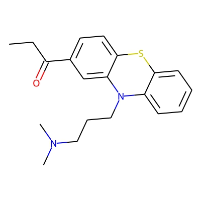 | CCSBASE_8F2BC6A458 | Propionylpromazine | [M+H]+ | 341.1682 | 182.8 | CCC(=O)c1ccc2c(c1)N(c3ccccc3S2)CCCN(C)C | small molecule | 1 | 6 | TW | ? |