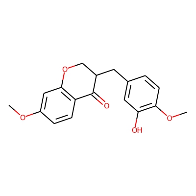| CCSBASE_046ED8A9AA | DEOXYSAPPANONE B 7,4'-DIMETHYL ETHER | [M+H]+ | 315.1227 | 170.6 | COC1=CC2=C(C=C1)C(=O)C(CO2)CC3=CC(=C(C=C3)OC)O | small molecule | 1 | 7 | TW | calibrated with polyalanine and drug standards | |