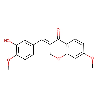 | CCSBASE_6A39D8AC40 | SAPPANONE A DIMETHYL ETHER | [M+H]+ | 313.1071 | 170.3 | COC1=CC2=C(C=C1)C(=O)/C(=C/C3=CC(=C(C=C3)OC)O)/CO2 | small molecule | 1 | 7 | TW | calibrated with polyalanine and drug standards | |