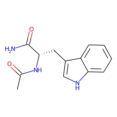 | CCSBASE_E05D73AA40 | ACETYLTRYPTOPHANAMIDE | [M+Na]+ | 268.1056 | 159.3 | CC(=O)N[C@@H](CC1=CNC2=CC=CC=C21)C(=O)N | small molecule | 1 | 7 | TW | calibrated with polyalanine and drug standards | |