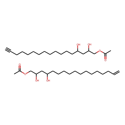 | CCSBASE_63A7AA0B72 | AVOCATIN A | [M+Na]+ | 677.4963 | 269.5 | CC(=O)OCC(CC(CCCCCCCCCCCC=C)O)O.CC(=O)OCC(CC(CCCCCCCCCCCC#C)O)O | small molecule | 1 | 7 | TW | calibrated with polyalanine and drug standards |