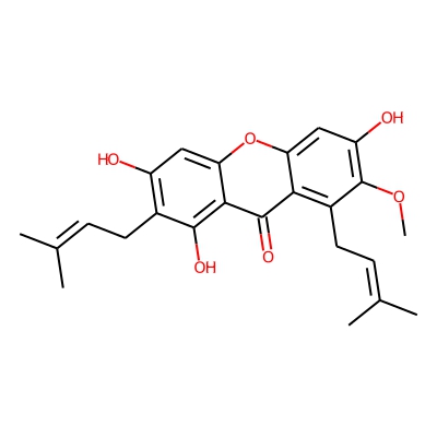 | CCSBASE_65ABBAE8FB | alpha-MANGOSTIN | [M+H]+ | 411.1802 | 198.8 | CC(=CCC1=C(C=C2C(=C1O)C(=O)C3=C(C(=C(C=C3O2)O)OC)CC=C(C)C)O)C | small molecule | 1 | 7 | TW | calibrated with polyalanine and drug standards | |