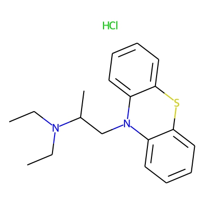 | CCSBASE_DA5B0A9CE2 | ETHOPROPAZINE HYDROCHLORIDE | [M+H]+ | 313.1733 | 168.5 | CCN(CC)C(C)CN1C2=CC=CC=C2SC3=CC=CC=C31.Cl | small molecule | 1 | 7 | TW | calibrated with polyalanine and drug standards | |