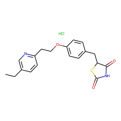 | CCSBASE_87E7FDDD51 | PIOGLITAZONE HYDROCHLORIDE | [M+H]+ | 357.1268 | 178.0 | CCC1=CN=C(C=C1)CCOC2=CC=C(C=C2)CC3C(=O)NC(=O)S3.Cl | small molecule | 1 | 7 | TW | calibrated with polyalanine and drug standards | |