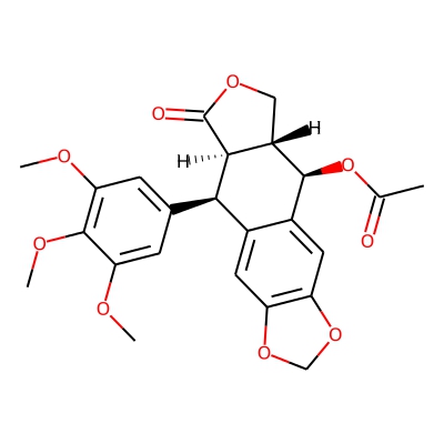 | CCSBASE_97C7941166 | PODOPHYLLIN ACETATE | [M+H]+ | 415.1393 | 191.9 | CC(=O)O[C@@H]1[C@H]2COC(=O)[C@@H]2[C@@H](C3=CC4=C(C=C13)OCO4)C5=CC(=C(C(=C5)OC)OC)OC | small molecule | 1 | 7 | TW | calibrated with polyalanine and drug standards | |