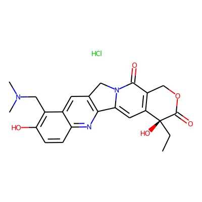 | CCSBASE_3E984CFED5 | TOPOTECAN HYDROCHLORIDE | [M+H]+ | 422.1711 | 211.2 | CC[C@@]1(C2=C(COC1=O)C(=O)N3CC4=C(C3=C2)N=C5C=CC(=C(C5=C4)CN(C)C)O)O.Cl | small molecule | 1 | 7 | TW | calibrated with polyalanine and drug standards | |