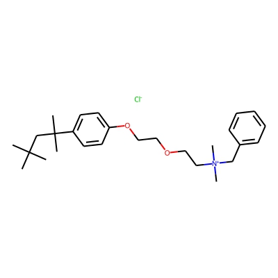 | CCSBASE_722EDCB83F | BENZETHONIUM CHLORIDE | [M+H]+ | 413.3289 | 210.3 | CC(C)(C)CC(C)(C)C1=CC=C(C=C1)OCCOCC[N+](C)(C)CC2=CC=CC=C2.[Cl-] | small molecule | 1 | 7 | TW | calibrated with polyalanine and drug standards | |