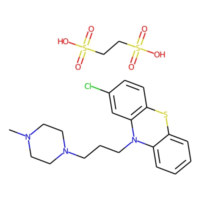 | CCSBASE_21188A1353 | PROCHLORPERAZINE EDISYLATE | [M+H]+ | 374.1452 | 182.9 | CN1CCN(CC1)CCCN2C3=CC=CC=C3SC4=C2C=C(C=C4)Cl.C(CS(=O)(=O)O)S(=O)(=O)O | small molecule | 1 | 7 | TW | calibrated with polyalanine and drug standards | |