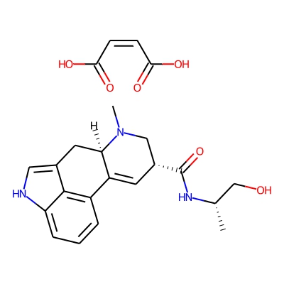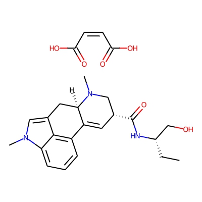 | CCSBASE_48583DD9C2 | METHYSERGIDE MALEATE | [M+H]+ | 354.2176 | 188.4 | CC[C@@H](CO)NC(=O)[C@H]1CN([C@@H]2CC3=CN(C4=CC=CC(=C34)C2=C1)C)C.C(=C\C(=O)O)\C(=O)O | small molecule | 1 | 7 | TW | calibrated with polyalanine and drug standards | |