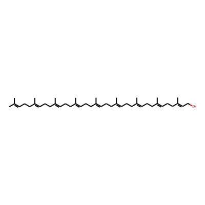 | CCSBASE_2D4F1C6DF2 | SOLANESOL | [M+H-H2O]+ | 613.5712 | 256.8 | CC(=CCC/C(=C/CC/C(=C/CC/C(=C/CC/C(=C/CC/C(=C/CC/C(=C/CC/C(=C/CC/C(=C/CO)/C)/C)/C)/C)/C)/C)/C)/C)C | small molecule | 1 | 7 | TW | calibrated with polyalanine and drug standards | |