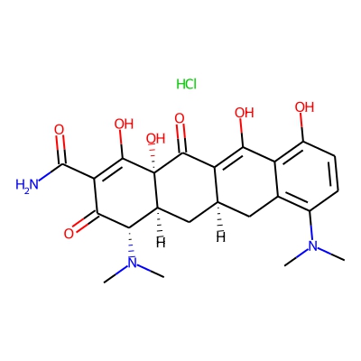 | CCSBASE_D7E828E96C | MINOCYCLINE HYDROCHLORIDE | [M+H]+ | 458.1922 | 208.1 | CN(C)[C@H]1[C@@H]2C[C@@H]3CC4=C(C=CC(=C4C(=C3C(=O)[C@@]2(C(=C(C1=O)C(=O)N)O)O)O)O)N(C)C.Cl | small molecule | 1 | 7 | TW | calibrated with polyalanine and drug standards | |