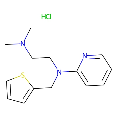 | CCSBASE_7E761E37A8 | METHAPYRILENE HYDROCHLORIDE | [M+H]+ | 262.1373 | 157.2 | CN(C)CCN(CC1=CC=CS1)C2=CC=CC=N2.Cl | small molecule | 1 | 7 | TW | calibrated with polyalanine and drug standards | |